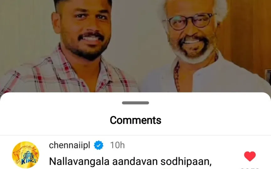 Here’s a look Sanju Samson’s instagram post and CSK’s comment: