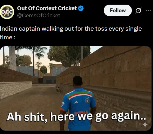 "India should not come for toss, just let the opponent decide what they want to do. Why waste time 😂🙈 #INDvsSA," wrote the former cricketer Sreevats Goswami on his Twitter/X handle.