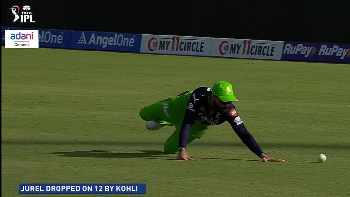 Jurel tried to hit it across the line but ended up sending the ball to long-off, right where Kohli was waiting. Kohli seemed a little too casual as he moved forward and ended up dropping the simple catch.